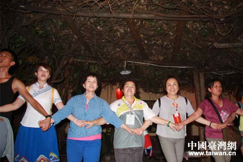 中國臺灣網(wǎng)8月19日恩施消息 19日下午,在參觀了恩施大峽谷和云龍河地縫之后,由臺灣“中華海峽兩岸臺灣原住民暨少數(shù)民族交流協(xié)會”理事長簡東明率領(lǐng)的臺灣少數(shù)民族參訪團體驗了獨具土家族特色的摔碗酒。臺灣少數(shù)民族代表與土家族青年都表演了各自的民族歌舞,最后,在場所有嘉賓手牽手圍繞篝火唱起歌跳起舞,在這片歡樂的海洋里為臺灣少數(shù)民族參訪團對恩施的參訪畫上了完美句號。