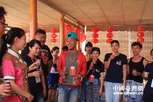 臺灣少數(shù)民族青年與土家族妹子對歌。(中國臺灣網(wǎng) 雍紫薇 攝)
