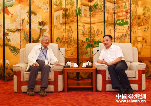 8月18日晚,陜西省委常委、省委統(tǒng)戰(zhàn)部部長(zhǎng)陳強(qiáng)在西安會(huì)見(jiàn)了臺(tái)灣促進(jìn)中國(guó)現(xiàn)代化學(xué)術(shù)研究基金會(huì)學(xué)術(shù)交流團(tuán)翟宗泉一行。(陜西省臺(tái)辦袁永明 攝)