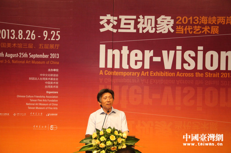 由中華文化聯(lián)誼會(huì)、臺(tái)灣美術(shù)基金會(huì)、中國(guó)美術(shù)館、臺(tái)灣美術(shù)館聯(lián)合主辦的“2013海峽兩岸當(dāng)代藝術(shù)展”,8月26日在中國(guó)美術(shù)館開(kāi)幕,中國(guó)美術(shù)館館長(zhǎng)范迪安在開(kāi)幕式上致辭。(中國(guó)臺(tái)灣網(wǎng) 蕪?fù)?攝)