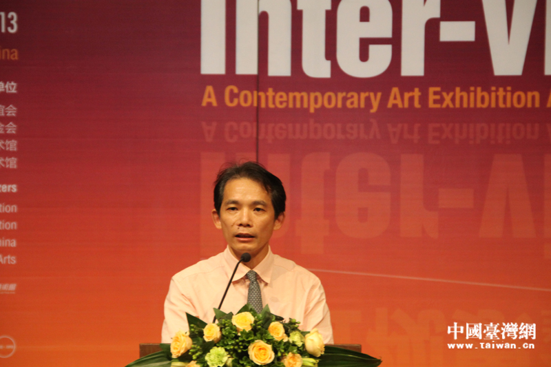 由中華文化聯(lián)誼會(huì)、臺(tái)灣美術(shù)基金會(huì)、中國(guó)美術(shù)館、臺(tái)灣美術(shù)館聯(lián)合主辦的“2013海峽兩岸當(dāng)代藝術(shù)展”,8月26日在中國(guó)美術(shù)館開(kāi)幕,臺(tái)灣美術(shù)館副館長(zhǎng)張仁吉在開(kāi)幕式上致辭。(中國(guó)臺(tái)灣網(wǎng) 蕪?fù)?攝)