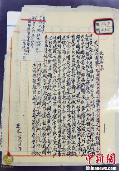 8月27日上午,中國(guó)國(guó)民黨黨史館在臺(tái)北舉辦喬遷暨揭幕儀式,國(guó)民黨主席馬英九出席并為黨史館揭幕。中國(guó)國(guó)民黨黨史館這次搬遷是歷史上第七度搬遷,對(duì)外公開超過(guò)300萬(wàn)件以上珍貴史料。圖為1913年孫中山寫給陳英士信的原件。中新社發(fā) 劉震 攝