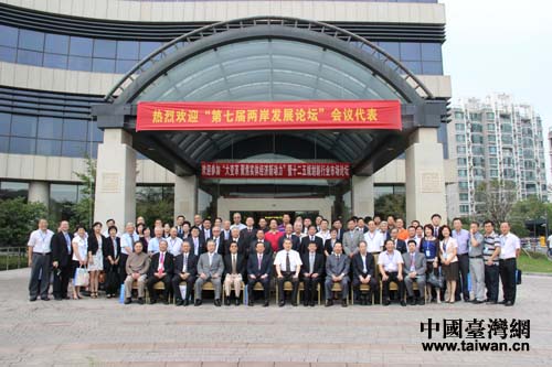 參加“第七屆兩岸發(fā)展論壇”的兩岸嘉賓集體合影留念。(中國臺灣網(wǎng) 扶海濤 攝)