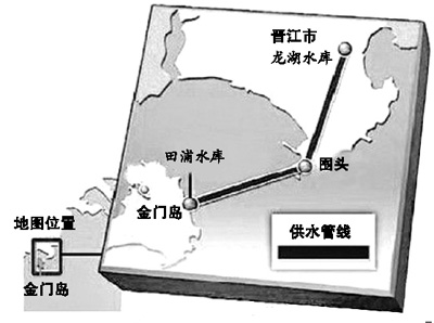 根據(jù)初步方案,向金門供水工程計(jì)劃從泉州晉江市龍湖取水,通過海底管道送到金門島的田埔水庫。