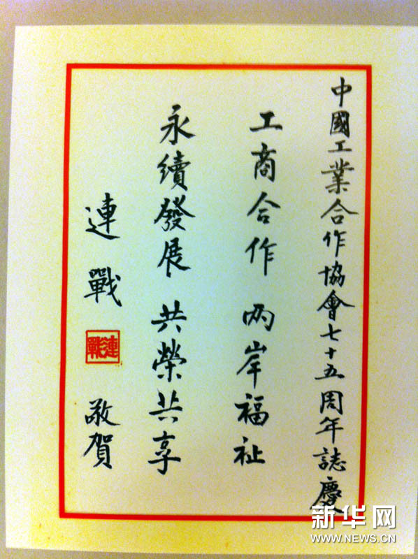 9月14日,中國工業(yè)合作協(xié)會在北京舉行成立75周年大會。國民黨榮譽主席為此專門發(fā)來賀電和題詞。新華社記者李保東攝
