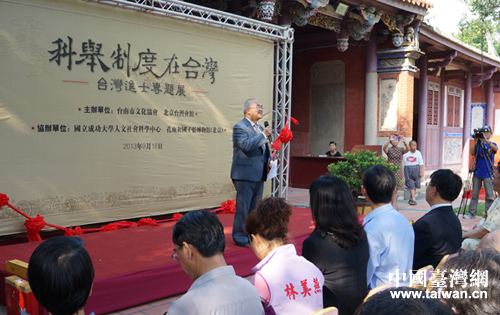 中國臺(tái)灣網(wǎng)9月23日消息 明鄭時(shí)期,儒學(xué)文化在臺(tái)灣落地生根,隨之科舉制度也傳至臺(tái)灣。科舉制度在臺(tái)灣推行兩百余年,有據(jù)可考的臺(tái)灣進(jìn)士就有33人,他們的名字至今銘刻在北京孔廟的進(jìn)士題名碑上。為了讓更多人士從歷史的角度了解科舉制度在臺(tái)灣的發(fā)展沿革,引起各界人士對傳統(tǒng)文化教育的興趣和關(guān)心,9月18日,北京臺(tái)灣會(huì)館與臺(tái)南市文化協(xié)會(huì)共同主辦的“清代臺(tái)灣進(jìn)士專題展”在臺(tái)南市孔廟舉行了隆重的開幕儀式。