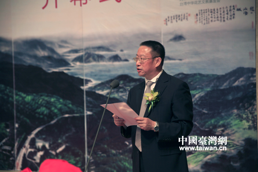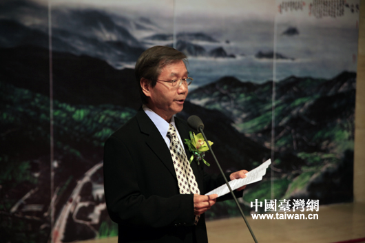 臺灣著名畫家黃永川書畫展9月24日在北京中國美術(shù)館開幕,周鐵農(nóng)在開幕式上致辭(中國臺灣網(wǎng) 蕪?fù)?攝)