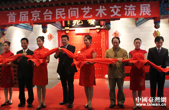 首屆京臺民間藝術(shù)交流展于2013年9月26日隆重開幕,北京市臺辦、北京市臺聯(lián)、中華青年企業(yè)家協(xié)會、北京大碗茶文化發(fā)展有限公司、北京老舍茶館有限公司的領(lǐng)導(dǎo)和嘉賓出席剪彩儀式。(中國臺灣網(wǎng) 楊永青 攝)