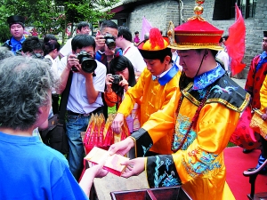 南新倉是國家AAA級旅游景區(qū),傳統(tǒng)的“開倉送!眱x式是歷年文化節(jié)備受關注的亮點。為了進一步弘揚漕運文化、倉場文化,今年的“草根皇帝”巡視糧倉和“開倉送! 儀式將在文化節(jié)期間舉行,有30余位身穿清朝官服的演員隊伍簇擁“皇帝”巡視糧倉,現(xiàn)場向民眾發(fā)放皇家糧谷送福。