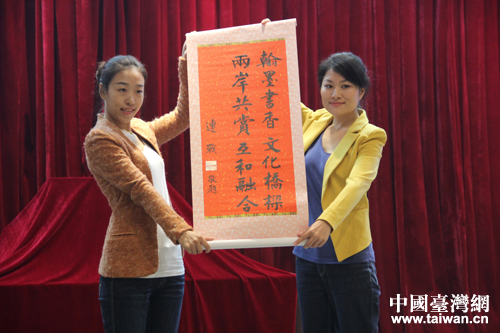 中國(guó)國(guó)民黨榮譽(yù)主席連戰(zhàn)先生專門為本次座談會(huì)題詞:翰墨書(shū)香 文化橋梁 兩岸共賞 互和融合。(中國(guó)臺(tái)灣網(wǎng) 王怡然 攝)