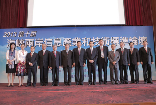 第十屆海峽兩岸信息產(chǎn)業(yè)和技術(shù)標(biāo)準(zhǔn)論壇上嘉賓合影。(圖片來(lái)源:工信部網(wǎng)站)