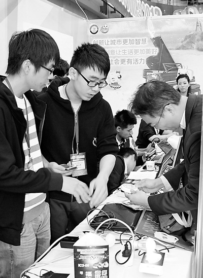 福建省軟件行業(yè)協(xié)會(huì)率“第三屆海峽兩岸信息服務(wù)創(chuàng)新大賽暨福建省第七屆計(jì)算機(jī)軟件設(shè)計(jì)大賽”兩岸交流組選手,9日在臺(tái)北與臺(tái)灣院校的優(yōu)秀人才進(jìn)行了交流競(jìng)賽。今年的大賽吸引了臺(tái)灣地區(qū)共30多所院校的近百支參賽隊(duì)伍報(bào)名。圖為交流現(xiàn)場(chǎng)。