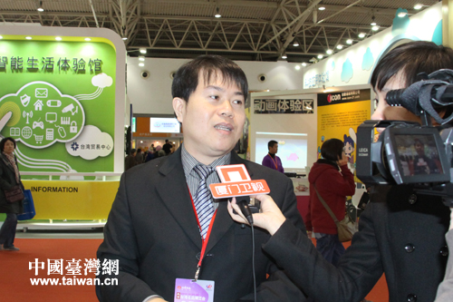 臺灣印刷工業(yè)技術(shù)研究中心張敬旺接受媒體采訪。(中國臺灣網(wǎng) 郭慶娜 攝)
