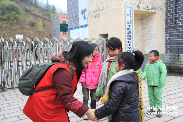 頂新公益基金會副秘書長周淑禎詢問留守兒童學(xué)習(xí)情況。(中國臺灣網(wǎng) 李徽 攝)