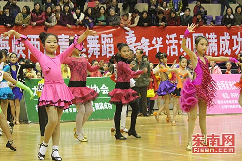 1日上午,第三屆海峽兩岸青少年國際標(biāo)準(zhǔn)舞公開賽暨第十三屆福建省國際標(biāo)準(zhǔn)舞錦標(biāo)賽在福州舉行。來自海峽兩岸的的7個代表團30支參賽代表隊近1000名選手參與比賽,以舞會友。