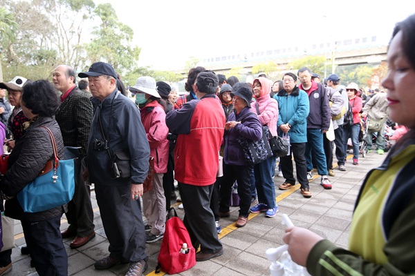 動(dòng)物園門(mén)口清晨5、6時(shí)就出現(xiàn)搶看“圓仔”的頭香客,每個(gè)人都是全副武裝,包得緊緊就為了看“圓仔”。截至動(dòng)物園9時(shí)開(kāi)園前,排隊(duì)人龍已經(jīng)延伸至捷運(yùn)動(dòng)物園站,約有500、600人。