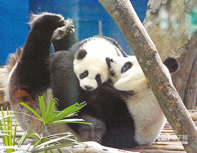 在開(kāi)館后過(guò)沒(méi)多久,媽媽圓圓緩緩走向一旁玩耍的圓仔,給它一個(gè)大大擁抱