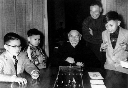 1950年代,蔣介石和孫子和友人的孩子玩游戲。蔣孝武玩得投入,孝勇還小,不太進(jìn)入狀況。蔣經(jīng)國總是在父親身后看著父親和兒子玩耍,把自己當(dāng)成配角,討爸爸開心。關(guān)于蔣經(jīng)國的生平,請(qǐng)參閱華文出版社《蔣經(jīng)國傳》、文化藝術(shù)出版社《絕地蔣經(jīng)國》和重慶出版社《我們臺(tái)灣這些年》。