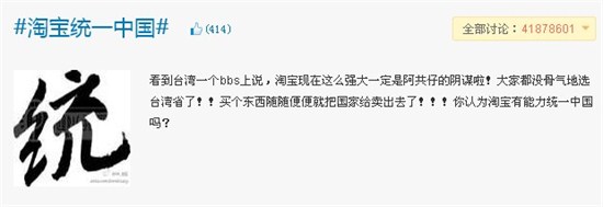 “淘寶統(tǒng)一中國(guó)”成熱門話題