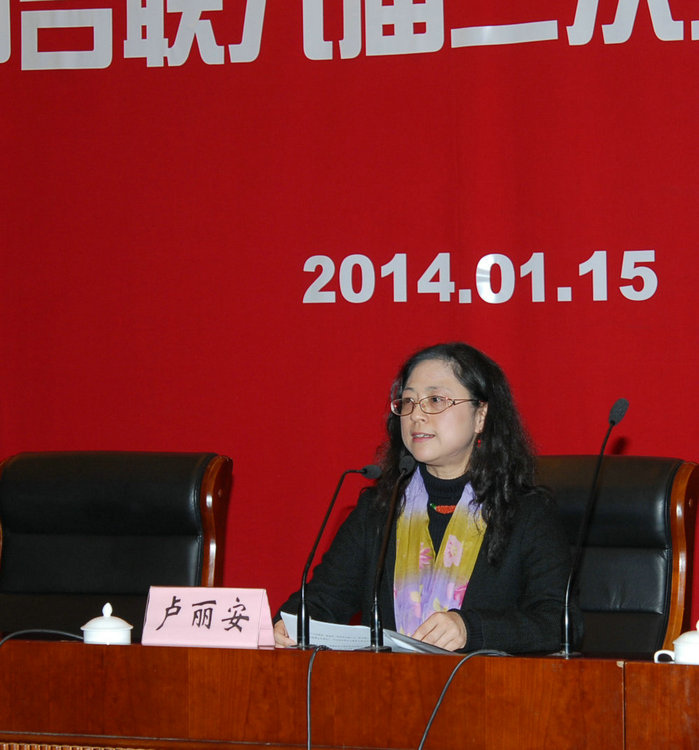 上海市臺(tái)聯(lián)會(huì)長(zhǎng)盧麗安作工作報(bào)告(上海臺(tái)聯(lián) 王茜 攝)
