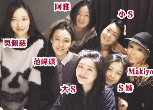 以大小S領(lǐng)銜的“七仙女”日前聚會(huì),大S與吳佩慈兩位準(zhǔn)媽媽素顏亮相,體態(tài)略顯豐腴。(微博截圖)