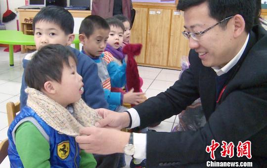 10日,在臺(tái)灣桃園縣一家私立身心障礙兒童照護(hù)機(jī)構(gòu)寶貝潛能發(fā)展中心,近20位2至6歲兒童戴上充滿兩岸愛心的各色漂亮圍巾,高興地笑了。
