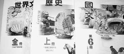 圖為臺(tái)灣的部分教科書(shū)。記者 吳亞明攝