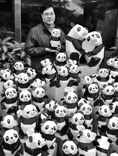 2月14日,臺灣紙雕藝術(shù)家陳學(xué)建設(shè)計的大熊貓、企鵝等動物立體紙雕亮相臺北動物園。由于當(dāng)日適逢中國元宵節(jié)和西方情人節(jié),可愛的紙雕作品為節(jié)日增添了情趣。圖為陳學(xué)建展示其設(shè)計的大熊貓立體紙雕。吳景騰攝(新華社發(fā))