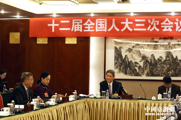6日下午,中共中央臺(tái)辦、國(guó)務(wù)院臺(tái)辦主任張志軍今天下午應(yīng)邀出席十二屆全國(guó)人大三次會(huì)議臺(tái)灣代表團(tuán)全體會(huì)議。(中國(guó)臺(tái)灣網(wǎng) 普燕 攝)