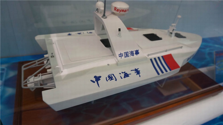 會(huì)展上出現(xiàn)的無(wú)人巡邏小艇模型(飛揚(yáng)軍事 同舟滅日 供圖)