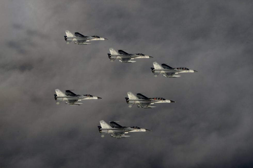 臺(tái)灣空軍駐臺(tái)南基地IDF機(jī)群升空巡航,組成6架IDF編隊(duì)。(鳴謝 鼎盛軍事 ddaa85)