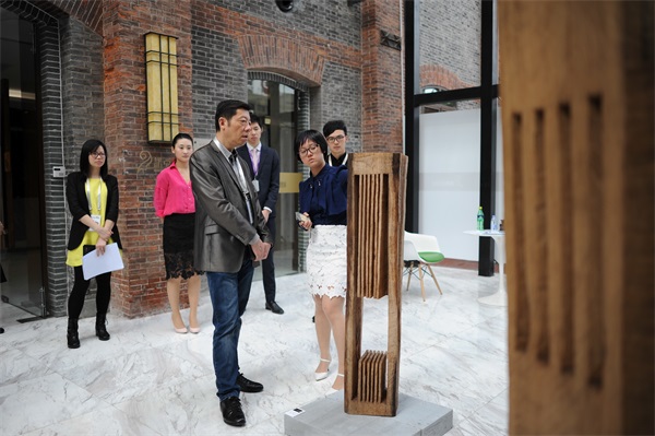 5月9日下午,諾亞財富文創(chuàng)展正式開幕。黃浦江畔的諾亞財富總部和歌斐資產(chǎn)的百年老建筑里,將分別展出了中國臺灣藝術(shù)家蕭長正和林振龍的藝術(shù)作品。帶有濃厚中國風(fēng)格的木雕和陶瓷展品與黃浦碼頭和改建后仍保持著老廠房古樸風(fēng)格的建筑體相映成輝。