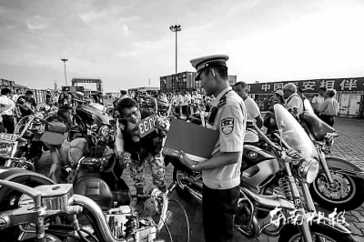 “重型機(jī)車(chē)處于露天狀態(tài),并且底盤(pán)較低,若采取小車(chē)的消毒方式會(huì)淹沒(méi)車(chē)架,所以就利用消毒墊,對(duì)機(jī)車(chē)的輪胎進(jìn)行消毒。”平潭出入境檢驗(yàn)檢疫局旅檢科科長(zhǎng)潘華楊說(shuō),在檢驗(yàn)檢疫方面,申請(qǐng)人僅需填寫(xiě)一張《進(jìn)出境車(chē)輛檢驗(yàn)檢疫申報(bào)單》即可。