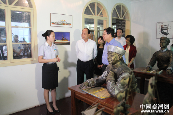 24日下午,海協(xié)會(huì)會(huì)長陳德銘夫婦與;鶗(huì)董事長林中森夫婦一起在福州馬尾參觀了中國船政文化博物館,圖為一行人參觀船政學(xué)堂。(中國臺(tái)灣網(wǎng) 張潔 攝)