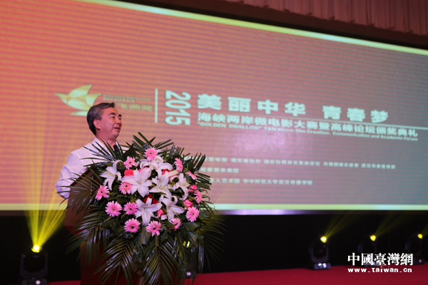 湖北省委常委、省宣傳部部長梁偉年出席第二屆海峽兩岸微電影高峰論壇頒獎(jiǎng)典禮并致辭。(中國臺(tái)灣網(wǎng) 高旭 攝)