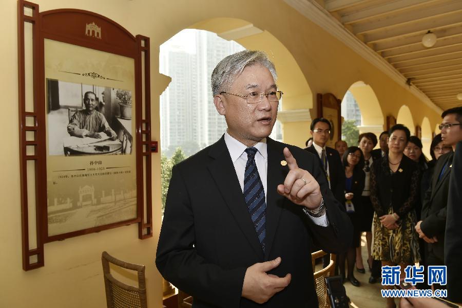 10月14日,夏立言在廣州孫中山大元帥府紀念館接受媒體采訪。 10月14日,臺灣方面陸委會主委夏立言在廣州拜謁黃花崗七十二烈士墓,參觀孫中山大元帥府紀念館、中山大學,參訪廣州臺資企業(yè)。 新華社記者梁旭 攝