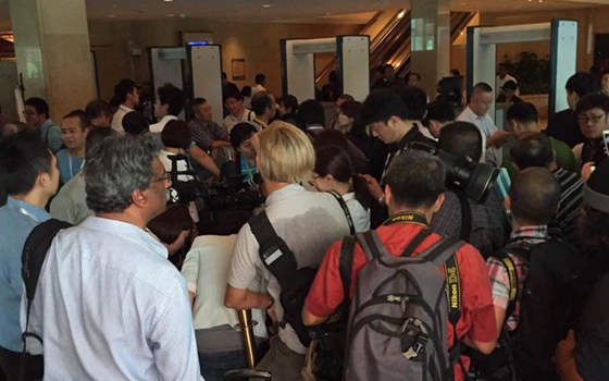 “習(xí)馬會(huì)”將在下午3時(shí)舉行。獲準(zhǔn)進(jìn)入采訪的記者的安檢將于12時(shí)30分開啟。香格里拉酒店現(xiàn)場(chǎng)設(shè)有4個(gè)安檢通道,入口已排起長(zhǎng)龍。