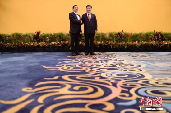 11月7日下午,兩岸領(lǐng)導(dǎo)人習(xí)近平與馬英九在新加坡香格里拉酒店歷史性會面。 中新社記者 廖攀 攝