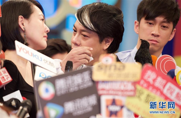 12月2日,蔡康永(中)在《康熙來了》告別記者會(huì)上接受訪問時(shí)一度哽咽。新華社記者姜克紅攝
