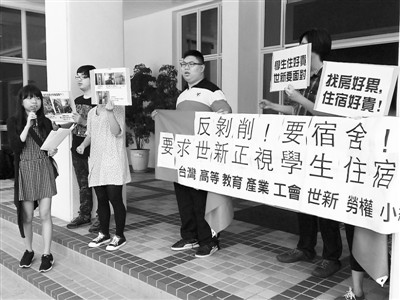 因“三限六不”等政策,在臺就讀的陸生常遭到不公平對待。圖為臺灣世新大學學生勞動權益行動小組抗議要求校方正視陸生住宿權益。(資料圖片)