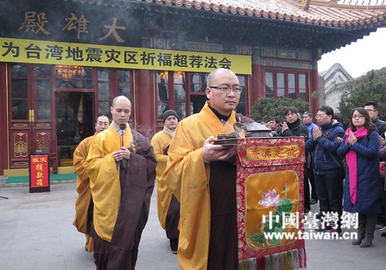 2月12日(農(nóng)歷大年初五),中國(guó)佛教協(xié)會(huì)在北京廣濟(jì)寺為臺(tái)灣地震災(zāi)區(qū)舉行祈福超薦法會(huì)并募集捐款。(中國(guó)臺(tái)灣網(wǎng) 田云鵬 攝)