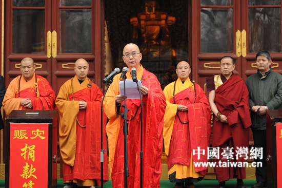 中國(guó)臺(tái)灣網(wǎng)2月12日北京訊。ㄓ浾 田云鵬)2月12日(農(nóng)歷大年初五),中國(guó)佛教協(xié)會(huì)在北京廣濟(jì)寺為臺(tái)灣地震災(zāi)區(qū)舉行祈福超薦法會(huì)并募集捐款。中國(guó)佛教協(xié)會(huì)會(huì)長(zhǎng)學(xué)誠(chéng)法師、副會(huì)長(zhǎng)演覺(jué)法師、宗性法師、胡雪峰喇嘛、副秘書(shū)長(zhǎng)常藏法師共同主法。北京廣濟(jì)寺、法源寺、靈光寺、龍泉寺、雍和宮的法師,中國(guó)佛教協(xié)會(huì)工作人員,部分在京臺(tái)商臺(tái)胞代表及各地信眾數(shù)百人參加法會(huì)。兩岸同胞共同祈愿三寶慈光加被,災(zāi)害遠(yuǎn)離,亡者往生凈土,生者吉祥安康。中國(guó)佛教協(xié)會(huì)副秘書(shū)長(zhǎng)宏度法師主持活動(dòng)。