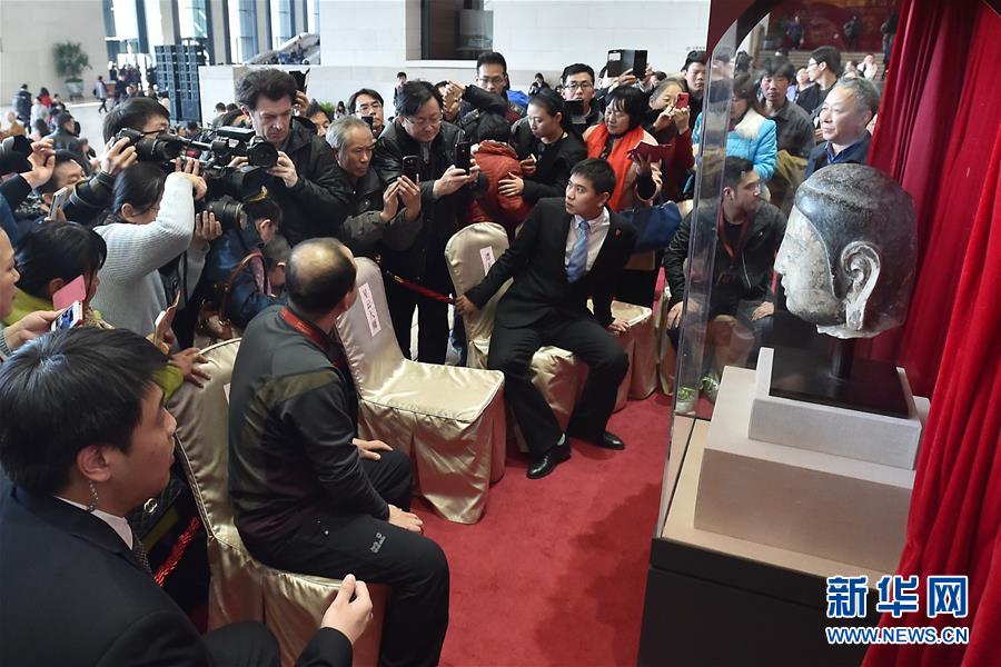 3月1日,回歸儀式上陳列的佛首引得關(guān)注。當(dāng)日,臺(tái)灣佛教界代表人士星云大師捐贈(zèng)北齊佛首造像回歸儀式在國家博物館舉行。據(jù)介紹,佛首回歸后將按規(guī)定程序完善檔案,納入河北省館藏珍貴文物序列,并盡快以技術(shù)手段使這尊佛像實(shí)現(xiàn)永久的“金身合璧”。 1996年,河北省靈壽縣幽居寺釋迦牟尼佛像頭部被不法分子盜割。2014年5月,星云大師接受信眾捐贈(zèng)一尊漢白玉佛首,后經(jīng)國家文物局組織專家摸排比對(duì)和鑒定,最終確定正是河北幽居寺被盜佛首。2014年12月,臺(tái)灣佛光山文教基金會(huì)與中華文物交流協(xié)會(huì)簽署協(xié)議,將佛首無償捐贈(zèng)中華文物交流協(xié)會(huì)。新華社記者 李賀 攝