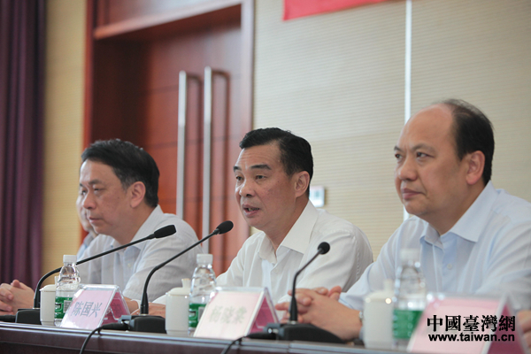 廣東省人民政府臺(tái)灣事務(wù)辦公室主任陳國(guó)興在成立儀式上致辭。(中國(guó)臺(tái)灣網(wǎng)發(fā))
