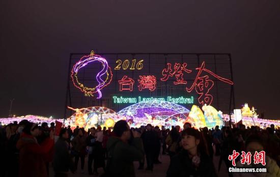 資料圖:2016年臺(tái)灣燈會(huì)于2月22日元宵夜在桃園正式點(diǎn)燈啟動(dòng)。已持續(xù)舉辦27年的臺(tái)灣燈會(huì),是臺(tái)灣規(guī)模最大的觀光活動(dòng)。中新社記者 陳悅 攝