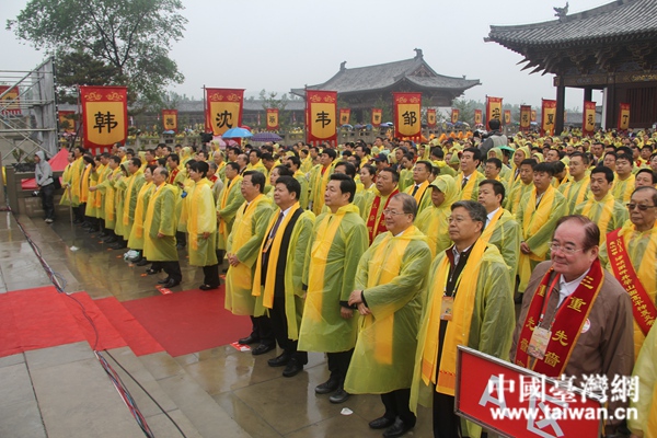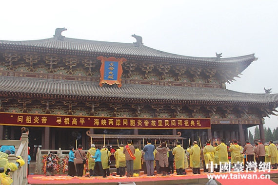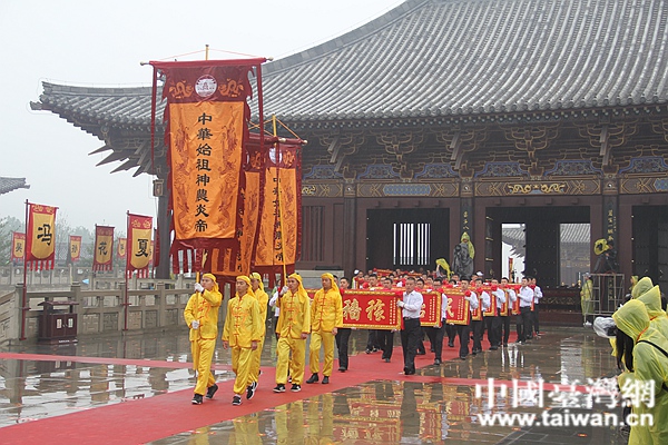 兩岸同胞在炎帝陵冒雨祭拜炎帝。(中國(guó)臺(tái)灣網(wǎng) 李學(xué)磊 攝)