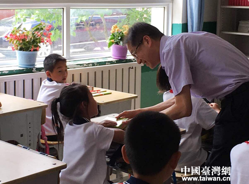 6月1日頂新公益基金會滕鴻年理事長與天津薊縣頂新小學的孩子們在一起。(頂新公益基金會供圖)