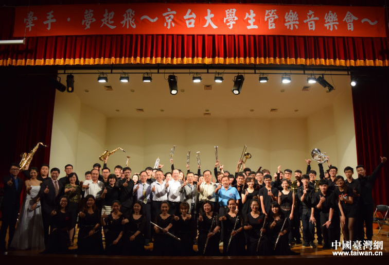 當晚演出中,首師大管樂團與高雄大學(xué)竹風弦語民樂社分別獻藝。隨后,由臺灣樂手加盟的“兩岸合璧版”首師大管樂團再度出場,兩岸學(xué)子的默契合奏將現(xiàn)場氣氛帶入高潮。演出結(jié)束,現(xiàn)場觀眾紛紛起立,對京臺大學(xué)生的合璧演出報以熱烈持久的掌聲。