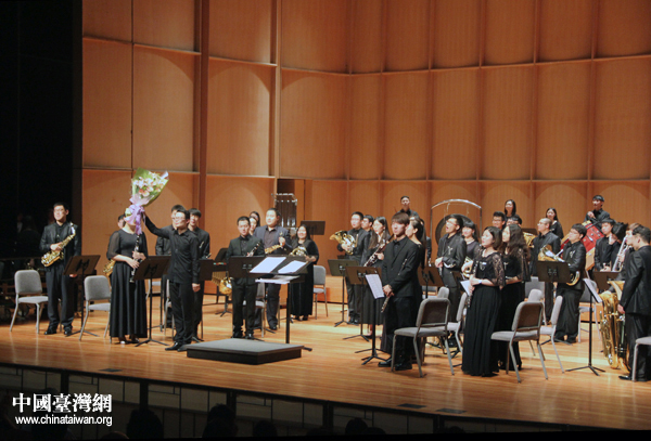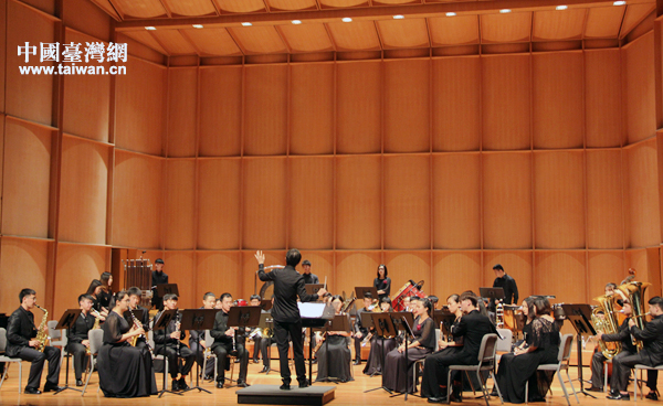 首都師范大學(xué)管樂(lè)團(tuán)向臺(tái)北觀眾致意。(中國(guó)臺(tái)灣網(wǎng) 王思羽 攝)