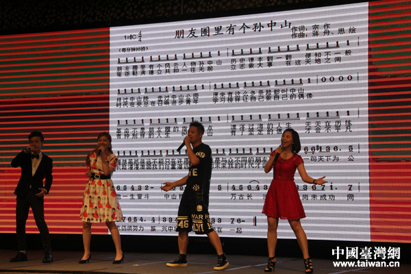 中國臺(tái)灣網(wǎng)7月4日訊(記者 王怡然) “朋友圈里有個(gè)風(fēng)云人物孫中山,歷史課本翻一翻便知不一般。拜過中山陵走過中山公園,原來有這么多條路都叫中山。革命不是朋友圈的指指點(diǎn)點(diǎn)……” 6月29日,民族魂·中山情——中華青年論壇暨紀(jì)念孫中山誕辰150周年活動(dòng)發(fā)布會(huì)在廣東中山舉行,來自臺(tái)灣的歌手唐佑林、金桂桂與大陸歌手姚琦、莊楊筱以街舞的形式首唱了歌曲《朋友圈里有個(gè)孫中山》。